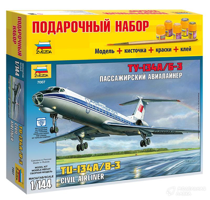 Сборная модель пассажирский авиалайнер Ту-134А/Б-3 с клеем, кисточкой и красками.