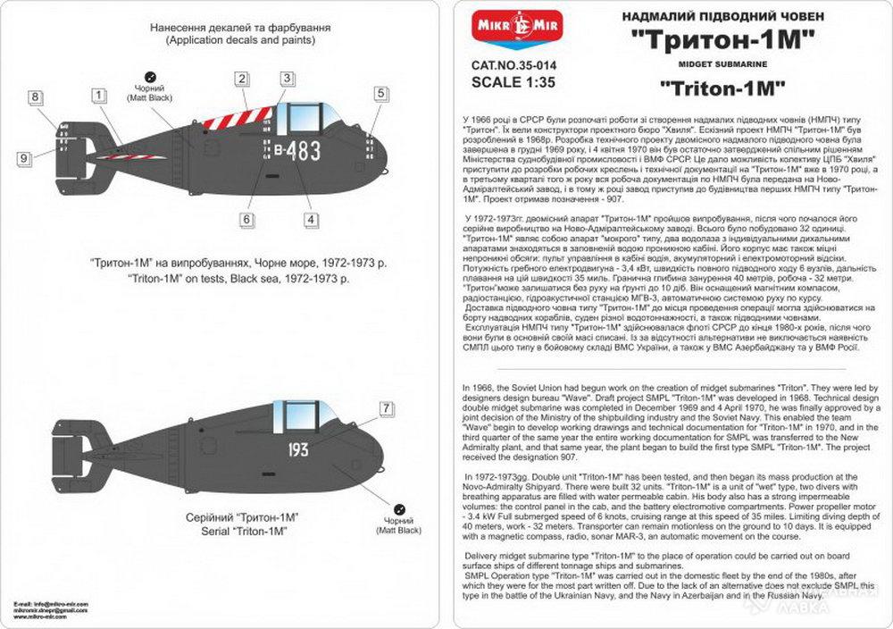 В 1966 году в СССР были начаты работы по созданию сверхмалых подводных лодок типа "Тритон". Их вели конструкторы проектного бюро "Волна". Эскизный проект СМПЛ "Тритон-1М" был разработан в 1968г. Разработка технического проекта двухместной сверхмалой подлодки была завершена в декабре 1969 года, и 4 апреля 1970 года он был окончательно утвержден совместным решением Министерства судостроительной промышленности и ВМФ СССР. Это дало возможность коллективу ЦПБ "Волна" приступить к разработке рабочих чертежей и технической документации на "Тритон-1М" уже в 1970 году, а в третьем квартале того же года вся рабочая документация по СМПЛ была передана на Ново-Адмиралтейский завод, и в том же году завод приступил к строительству первых СМПЛ типа "Тритон-1М". Проект получил обозначение 907.