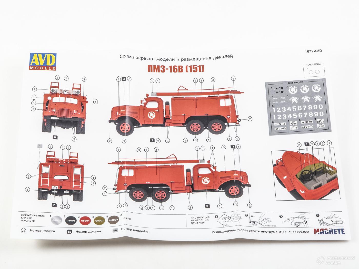 Сборная модель пожарный автомобиль ПМЗ-16В (151)