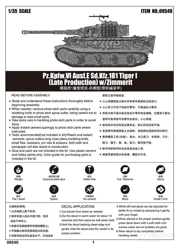 - Сборная модель Pz.Kpfw.VI Ausf.E Sd.Kfz.181 Tiger I (Late Production) w/Zimmerit