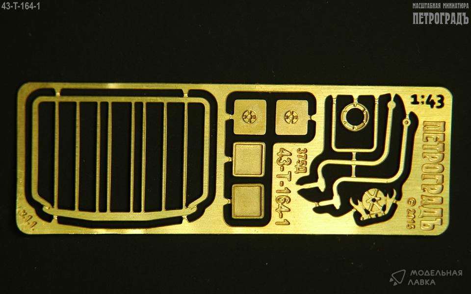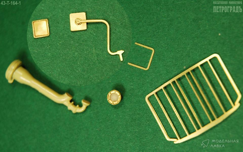 Набор для моделей Урал 375 и 377 в составе: 1 имтация решётки радиатора (единой деталью), 1 пара зеркал, скоба-подножка под бампер; латунь