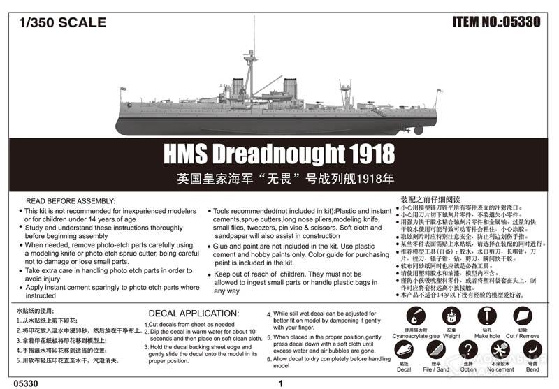 - Сборная модель Royal Navy Battleship HMS Dreadnought 1918