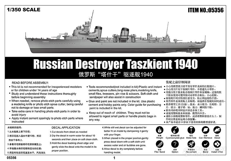 - Сборная модель Russian Destroyer Taszkient 1940