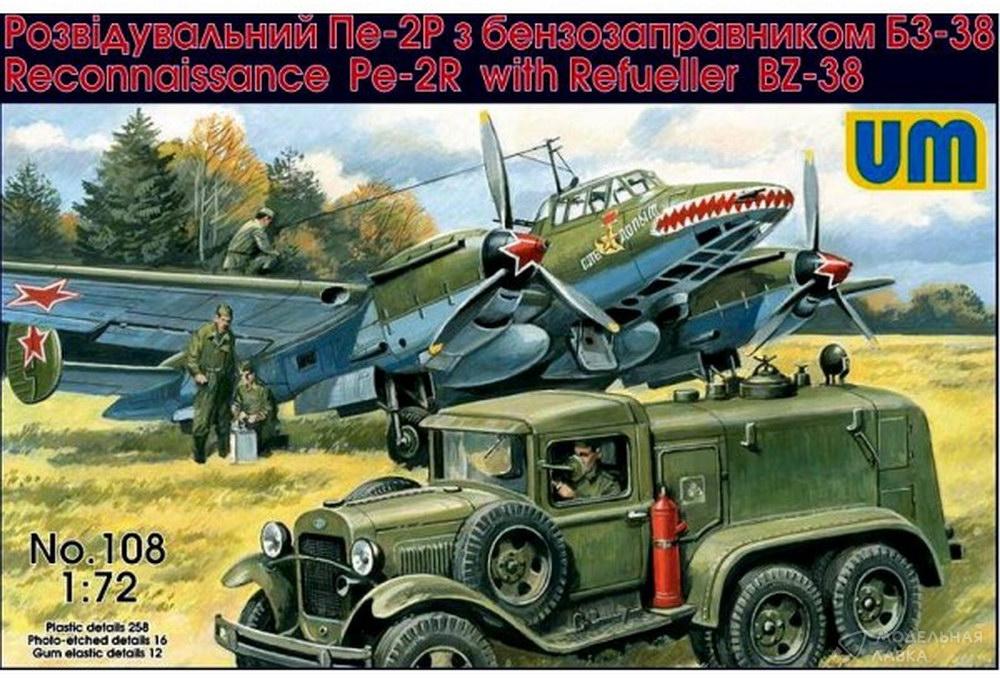 Сборная модель самолет разведчик Пе-2Р с автозаправщиком BZ-38