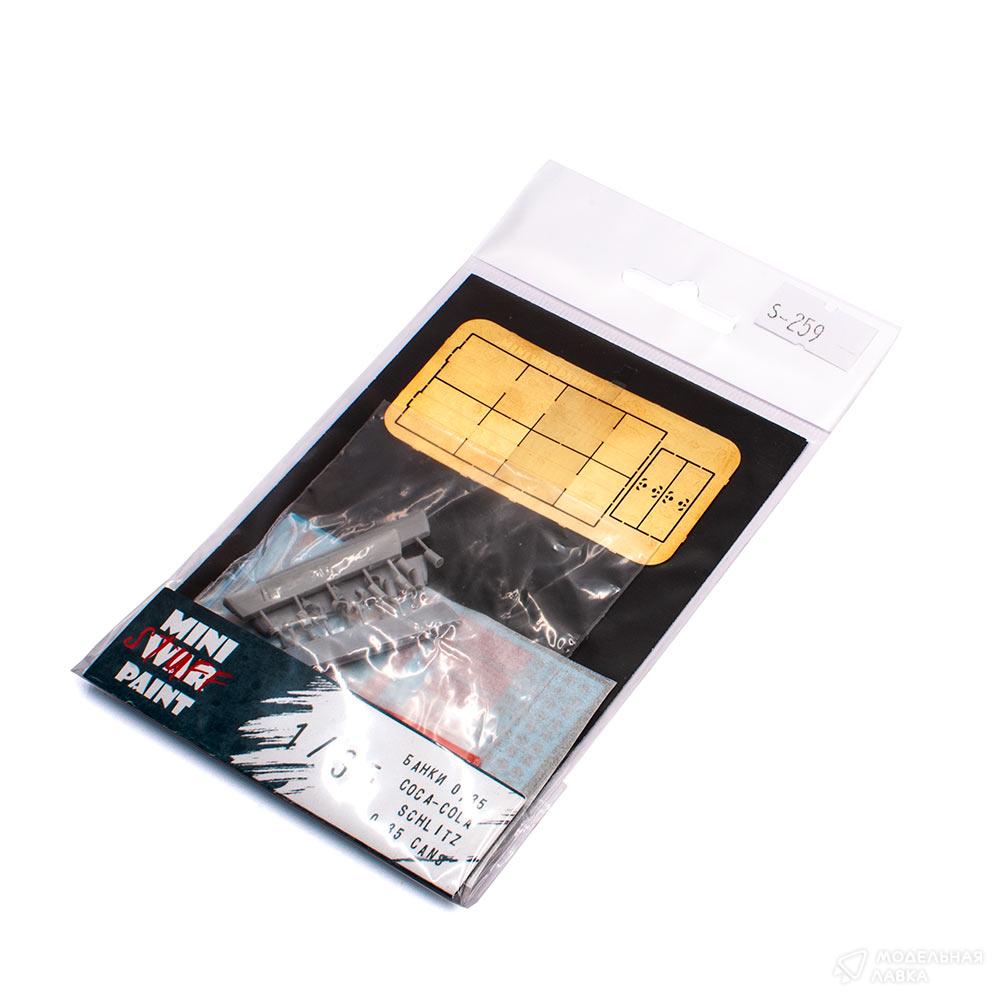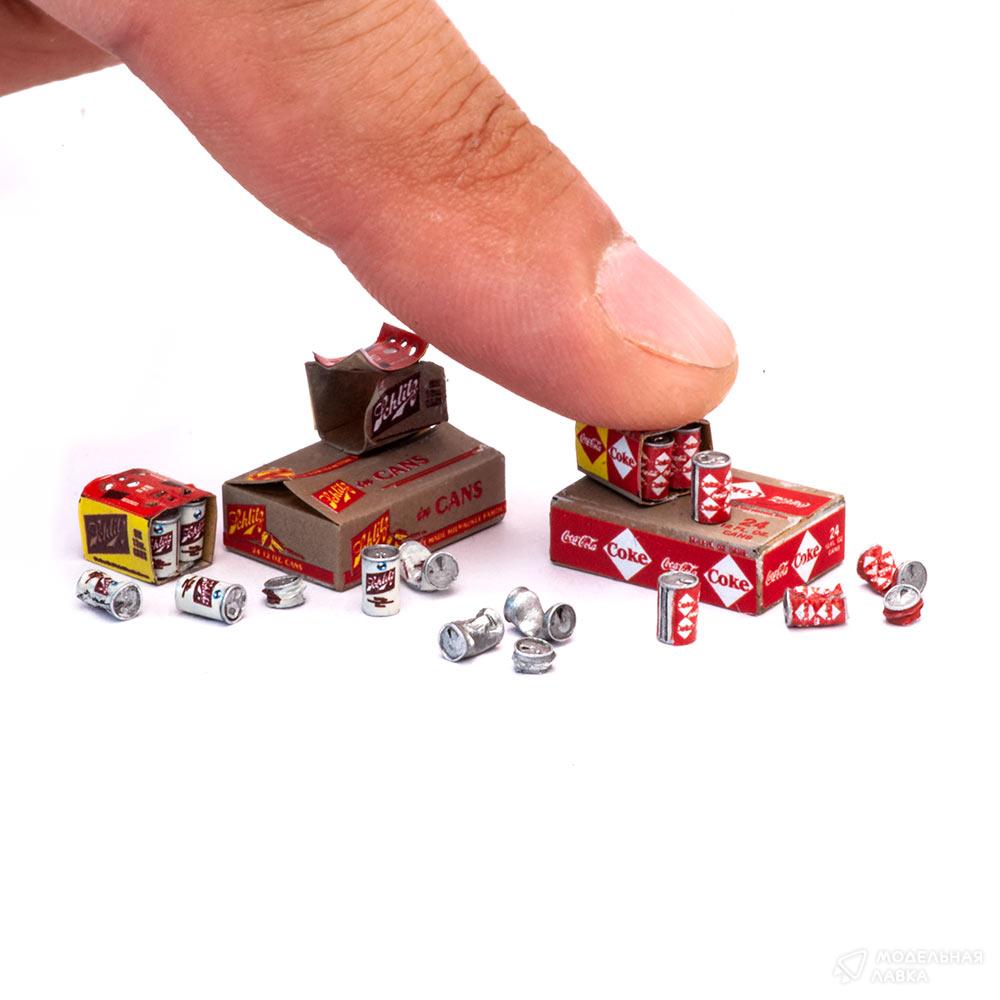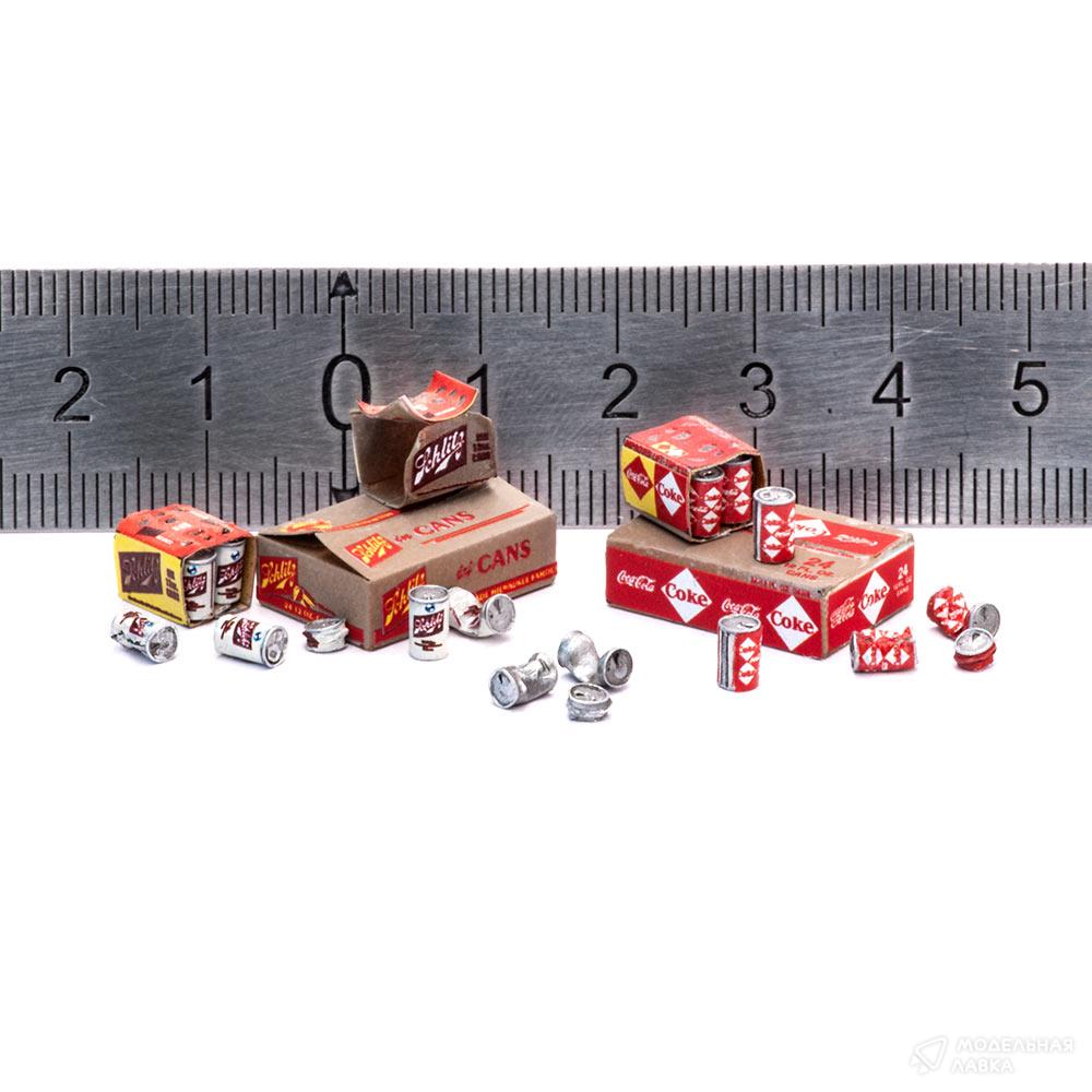 Банки для масштаба 1/35 Coca-Cola и Schlitz 0,35 с транспортной упаковкой на период 1960е-1970е годы.