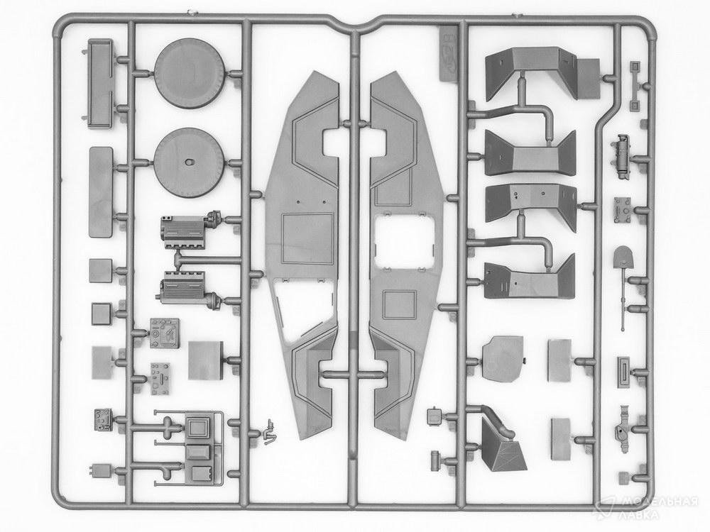 В комплект входит 247 деталей для сборки Sd.Kfz. 247 комплектов бронированной командирской машины Ausf.B и 32 детали для сборки четырех фигур немецкого экипажа командирской машины 1939-1942 годов.