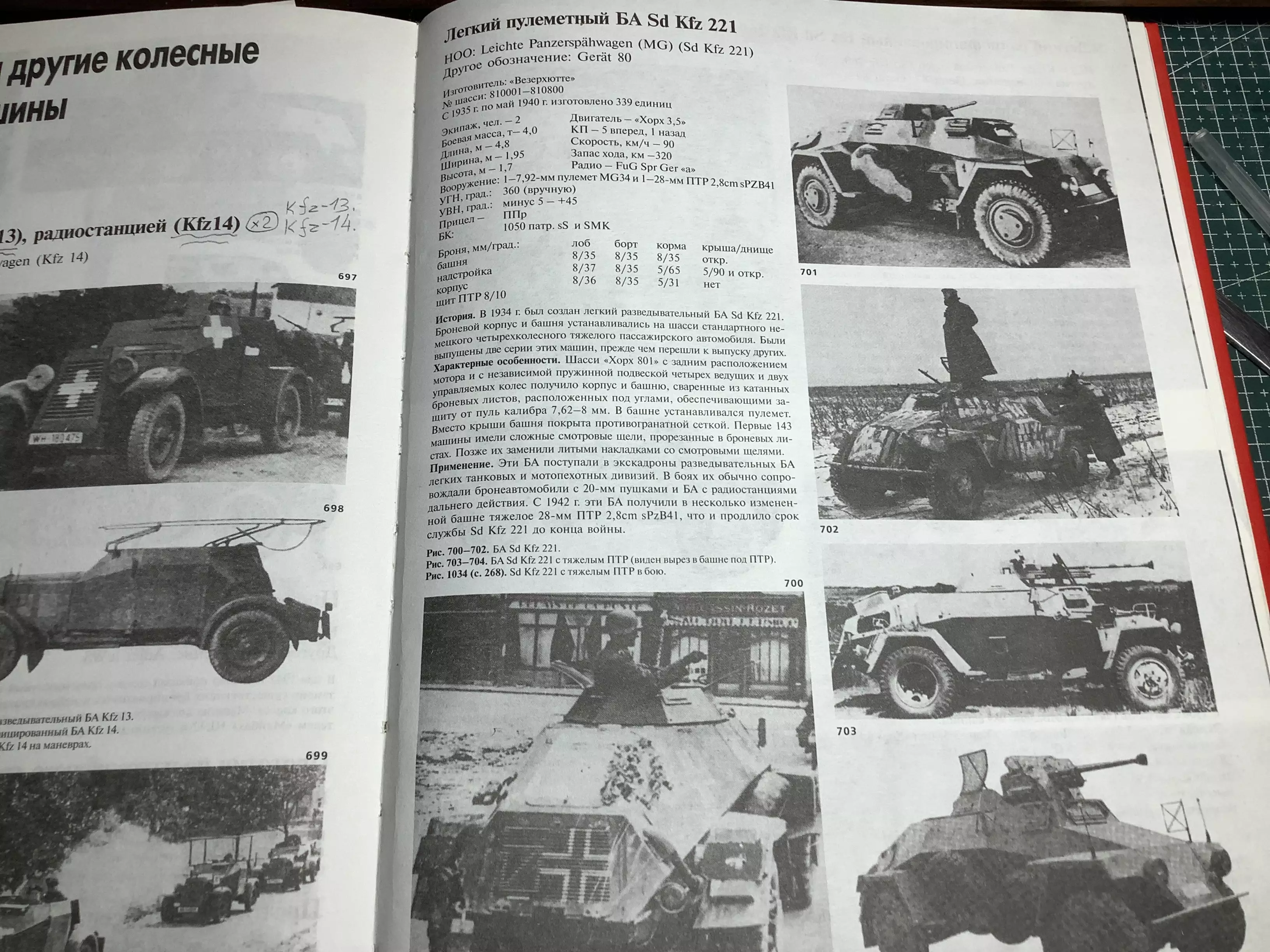 На базе Sd.Kfz.222 строились различные бронеавтомобили радиосвязи, например, Sd.Kfz.223. Эти машины были вооружены пулеметом MG 34 и использовались в разведывательных подраз-делениях Вермахта.