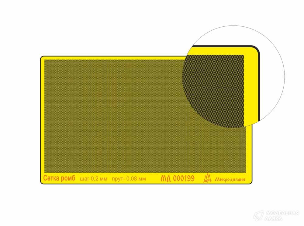 Набор фототравления сетки с ромбовидным пдетением. Масштаб 1:35. Материал: латунь 0,15 мм. Шаг 0,2 мм, прут 0,08 мм. Размер 95*52 мм. Уровень сложности - начальный.