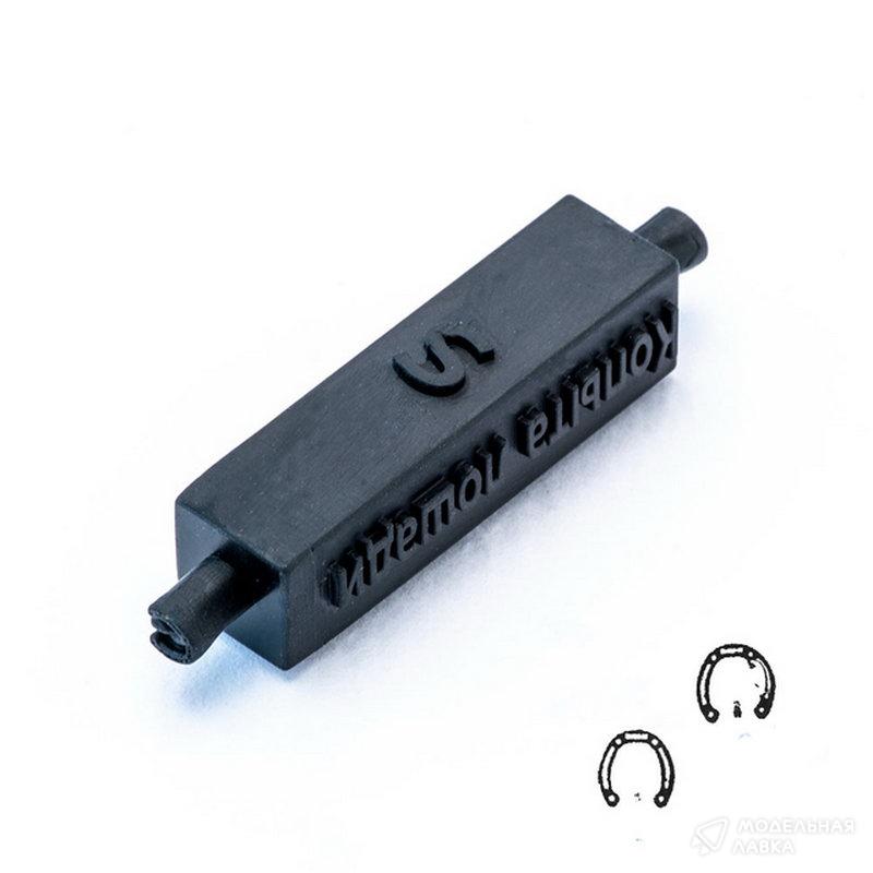 Изготовлен из резины, что позволяет эффективно оставлять как плоские отпечатки краской как штампом, так и объемные следы в двухкомпонентных или полимерных пластиках.