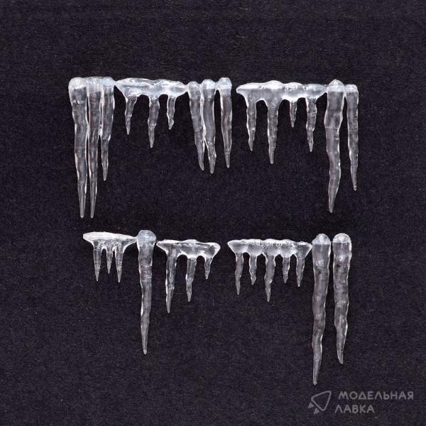 Данные сосульки, выполненные в трех размерах S, М и L, украсят любой проект: и подставку под игровой миниатюрой 28 мм, и зимнюю технику в масштабе 1/35 и базу коллекционной фигуры 75 мм. Для удобства крепления у них в верху сделан вырез углом, что позволит легко наклеить их как на гусеничную полку танка, так и на карниз дома. Сосульки выполнены из полиуретановой смолы, и пика прозрачности и максимальной натуралистичности достигают при финишном покрытии глянцевым акриловым лаком. Монтаж рекомендован на эпоксидный клей, что позволяет объединять их в целые блоки.