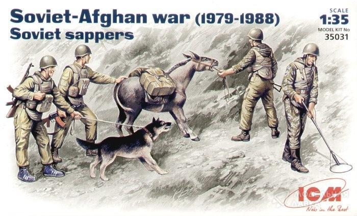 Набор содержит четыре фигуры советских саперов времен войны в Афганистане, а также фигуры осла и собаки.