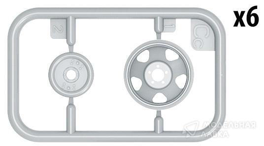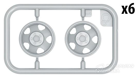 Установлены: поворотный мост, тросик для запасного колеса, задний держатель гос. номера.Кабина покрашена краской из "схемы", краск