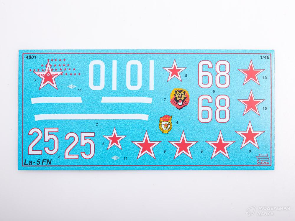 Ла-5ФН является одним из лучших самолетов Второй Мировой войны. Летчикам противника в случае встречи с Ла-5ФН рекомендовалось «ни в коем случае не терять скорость и избегать длительного воздушного боя». 6 июля 1943 года, в боях на Курской дуге Александр Константинович Горовец на Ла-5ФН вступил в бой с 20 вражескими бомбардировщиками и сбил 9 из них. В набор входит: 5 отливок, 1 декаль, инструкция по сборке
