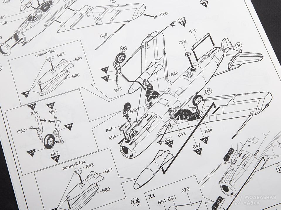 Комплект пластиковых деталей для сборки модели советского реактивного истребителя в масштабе 1:48