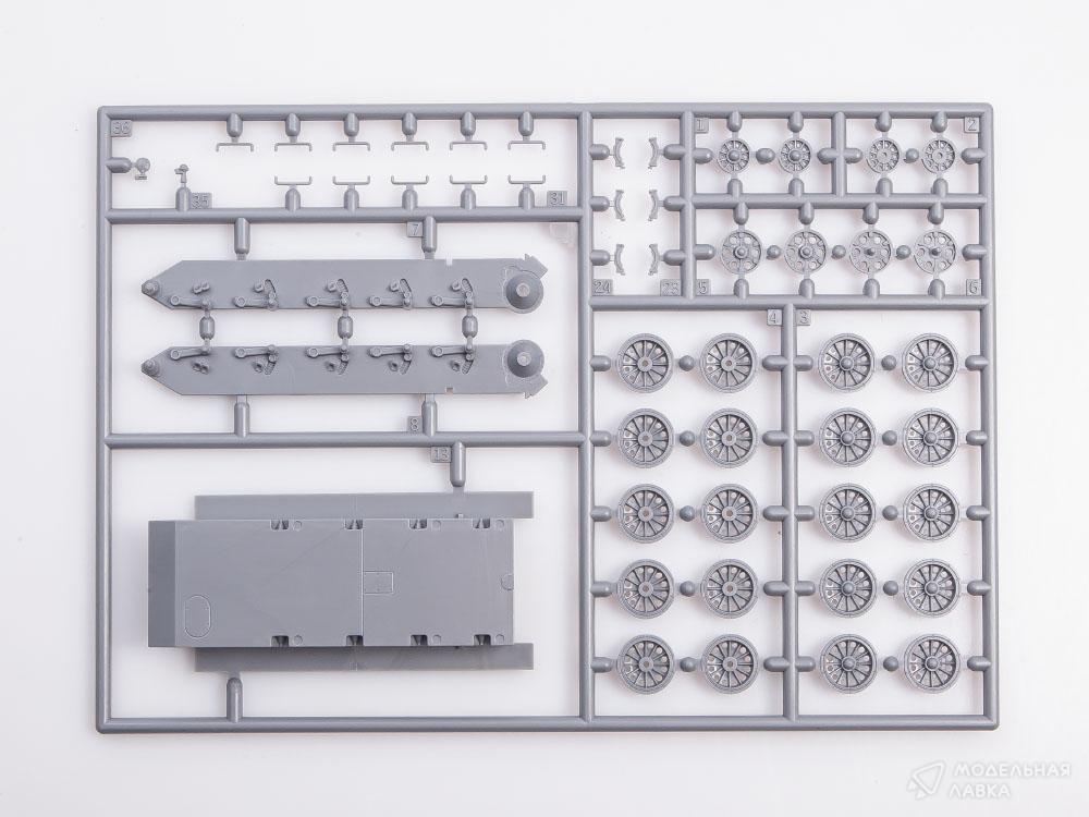 Детализированная ходовая часть, наборные пластиковые гусеницы с прямыми участками, выполненными единой деталью.