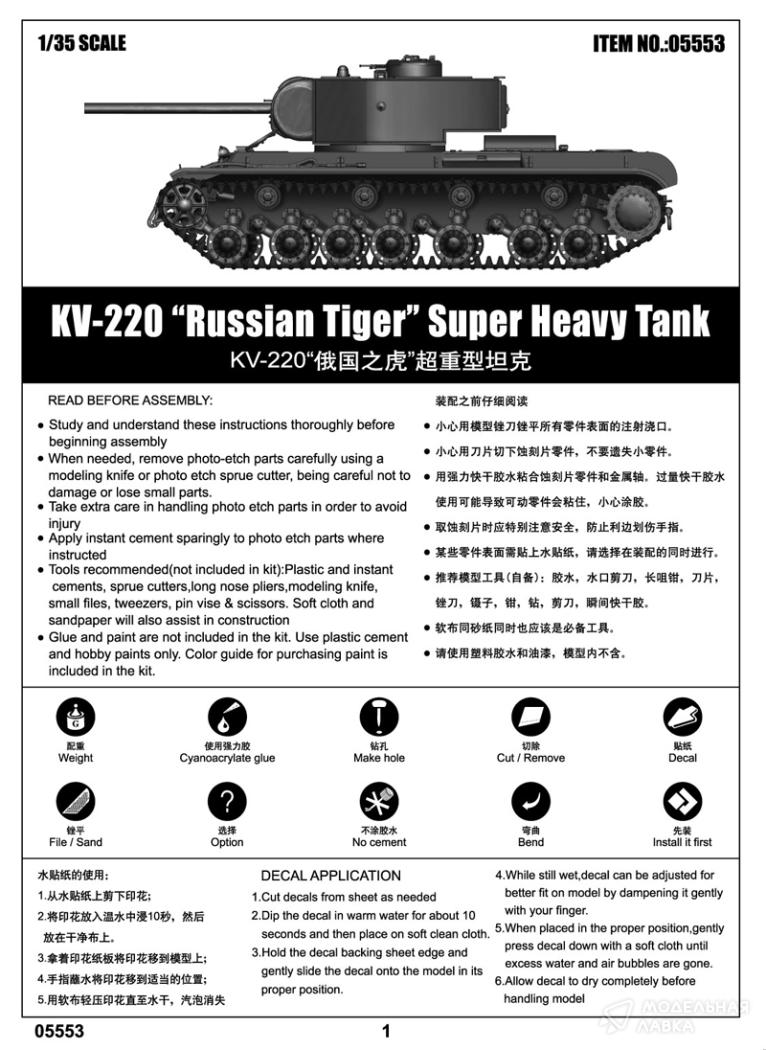 - Сборная модель Soviet KV-220 Super heavy tank