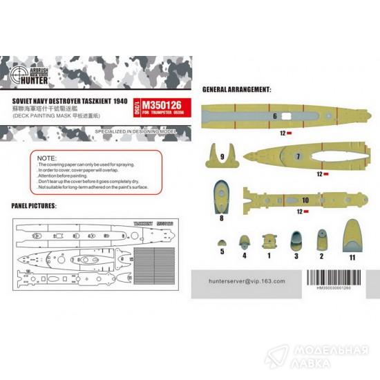 - Soviet Navy Destroyer Taszkient 1940 Deck Painting Mask (For Trumpeter 05356)