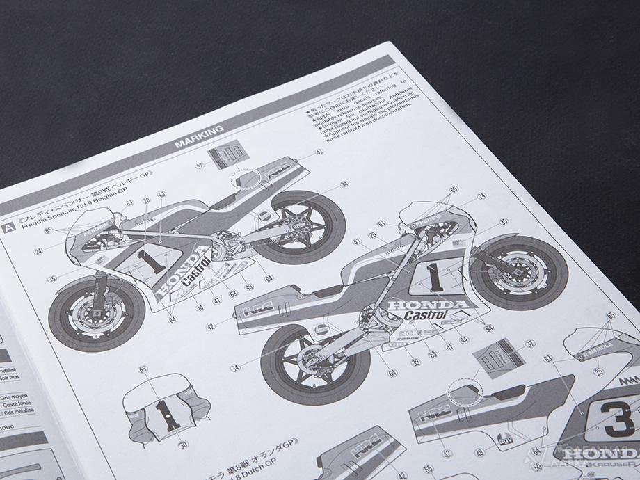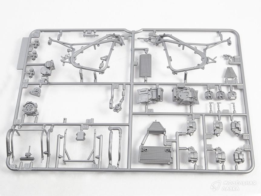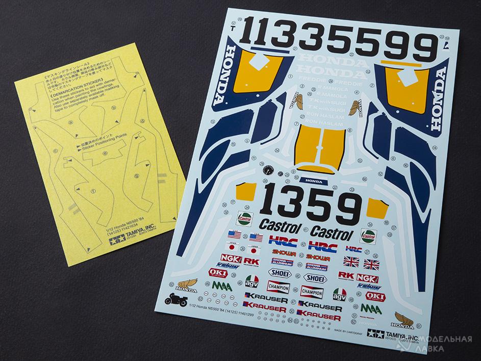 Комплект пластиковых деталей для сборки масштабной модели спортивного мотоцикла Honda NS 500'84 в масштабе 1:12.
