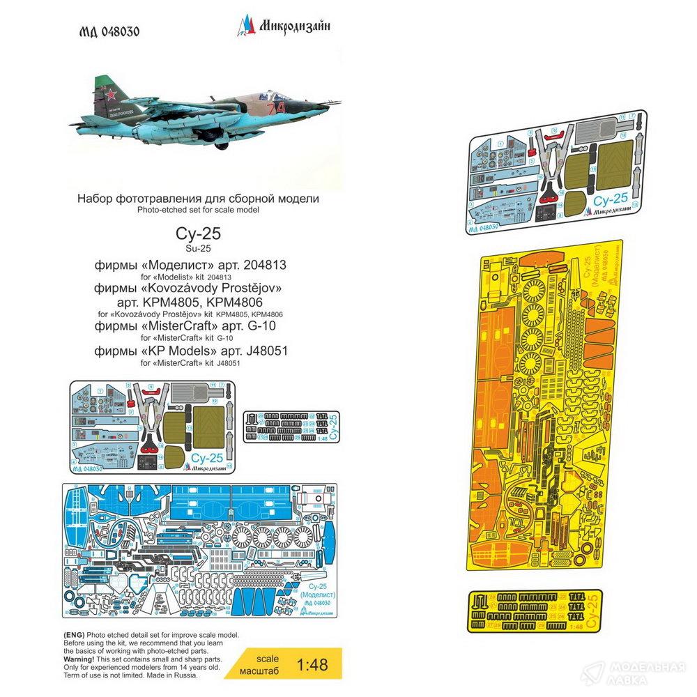 Набор фототравления на Су-25 от Моделист. Масштаб 1:48. Материал: латунь 0,15 мм, мельхиор 0,15 мм. Набор комплектуется 3 пластинами фототравления (в том числе одной цветной пластиной приборной доски, ремней) и полноцветной инструкцией. Количество уникальных деталей 104 Уровень сложности: средний.