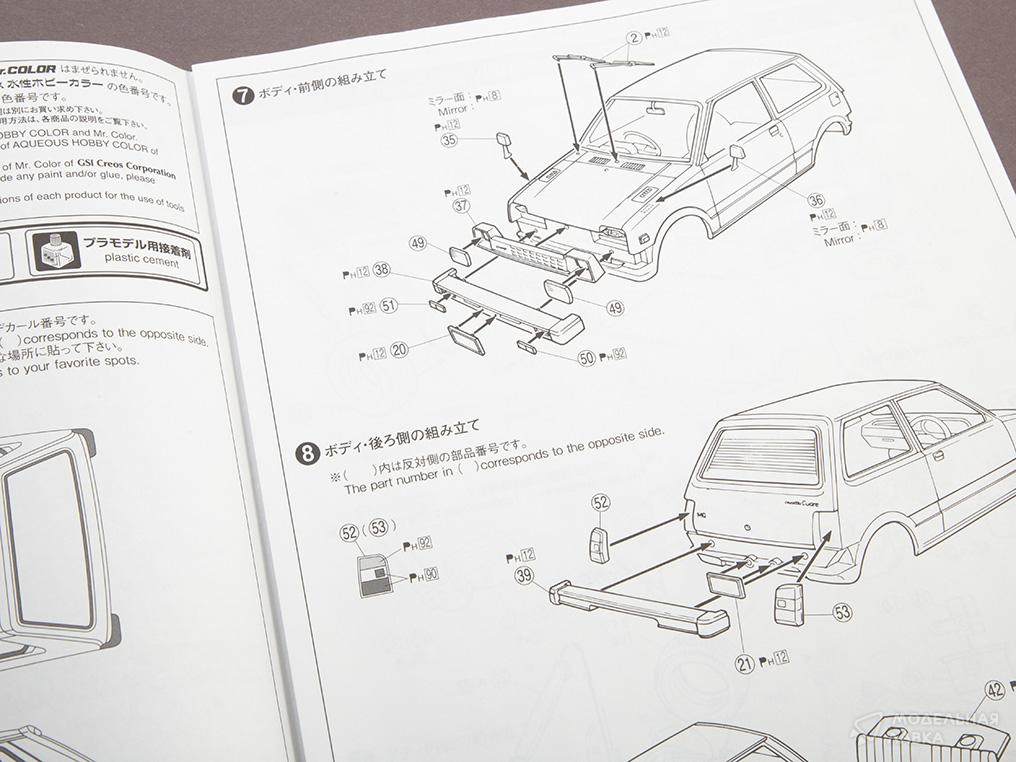 В набор входят литники с деталями для сборки одной модели, декали для нанесения на кузов, иллюстрированная инструкция на английском и японском языках.