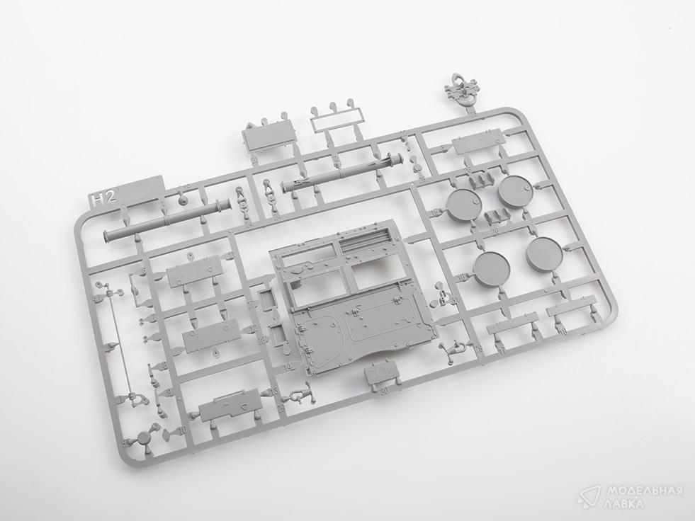 Установлены: поворотный мост, тросик для запасного колеса, задний держатель гос. номера.Кабина покрашена краской из "схемы", краск