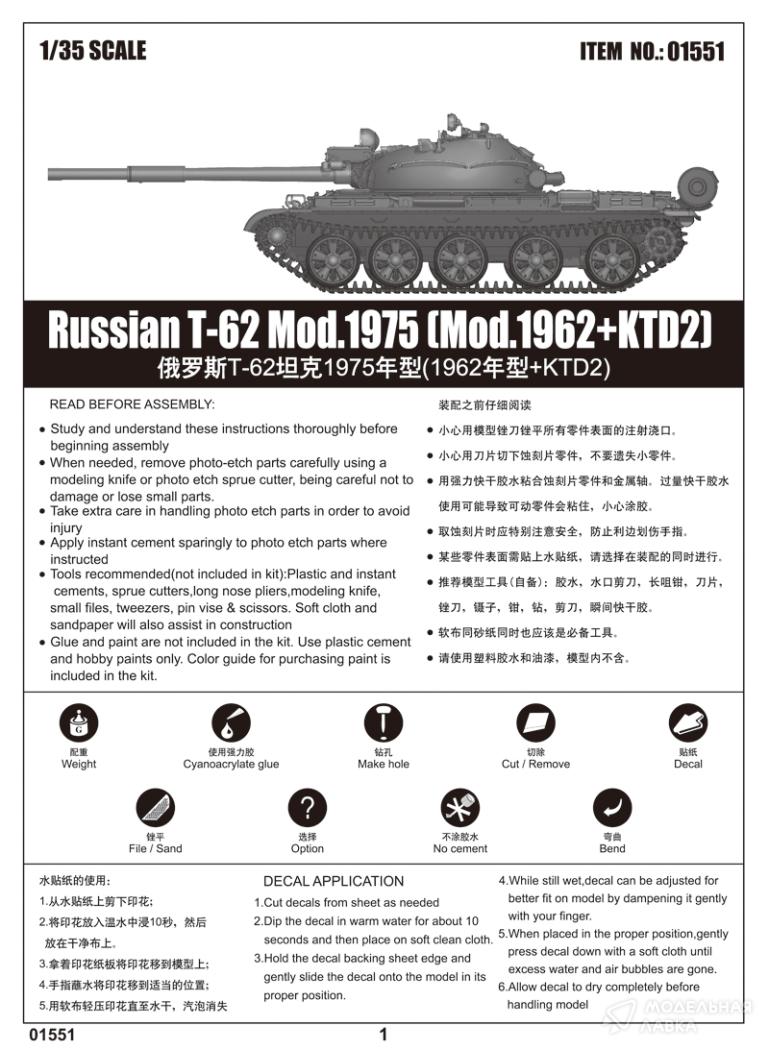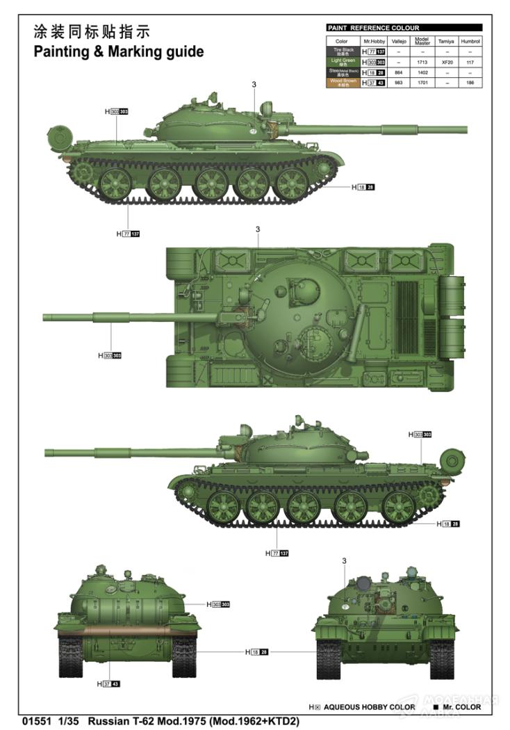 - Сборная модель T-62 mod 1975 (mod. 1962+KTD2)