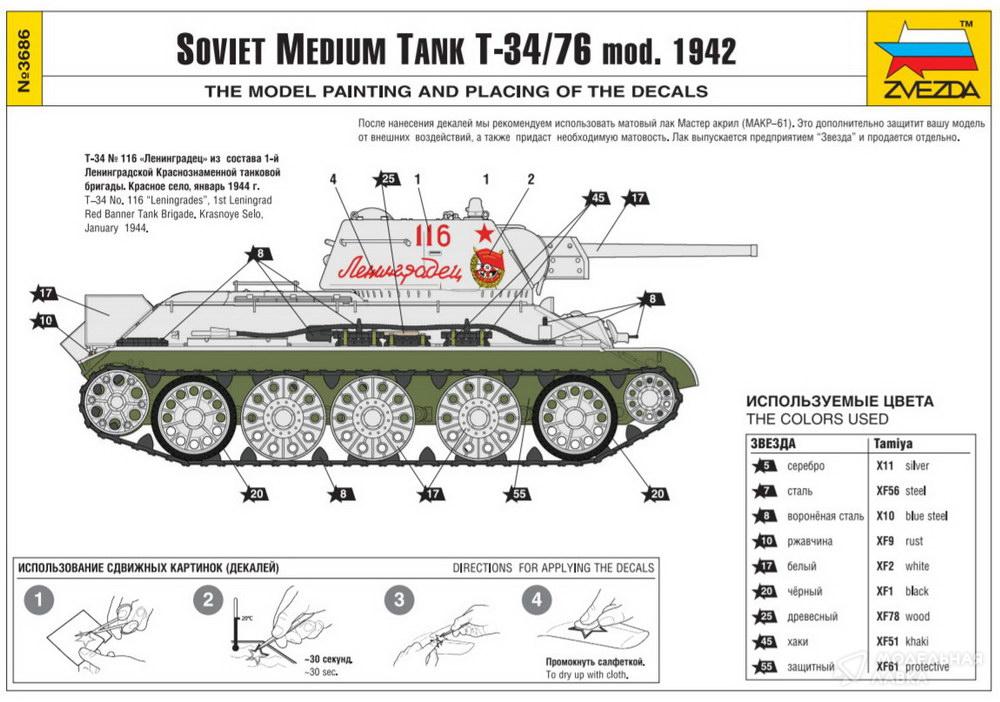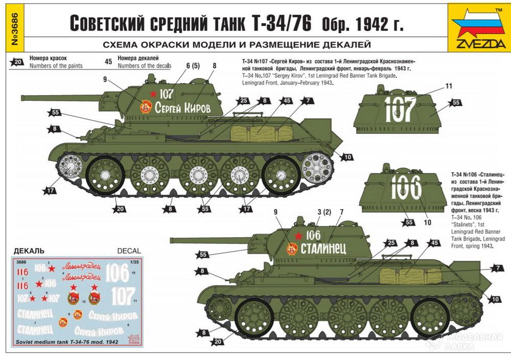 - Сборная модель танк Т-34-76 "Гайка" УТЗ, 1942 г