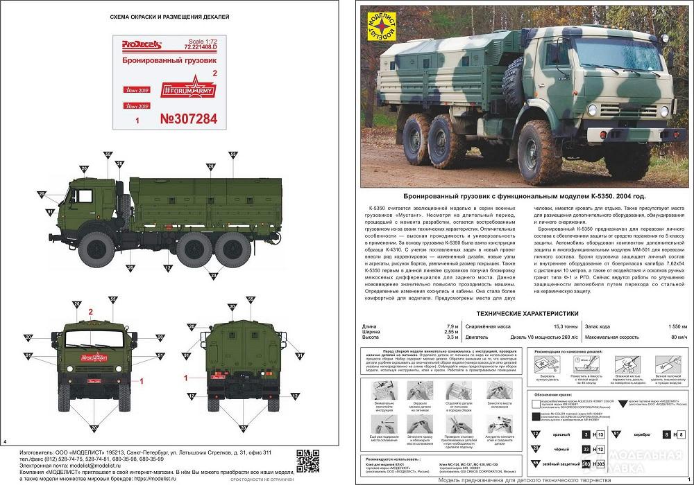 - Сборная модель техника и вооружение Бронированный грузовик с функциональным модулем К-5350