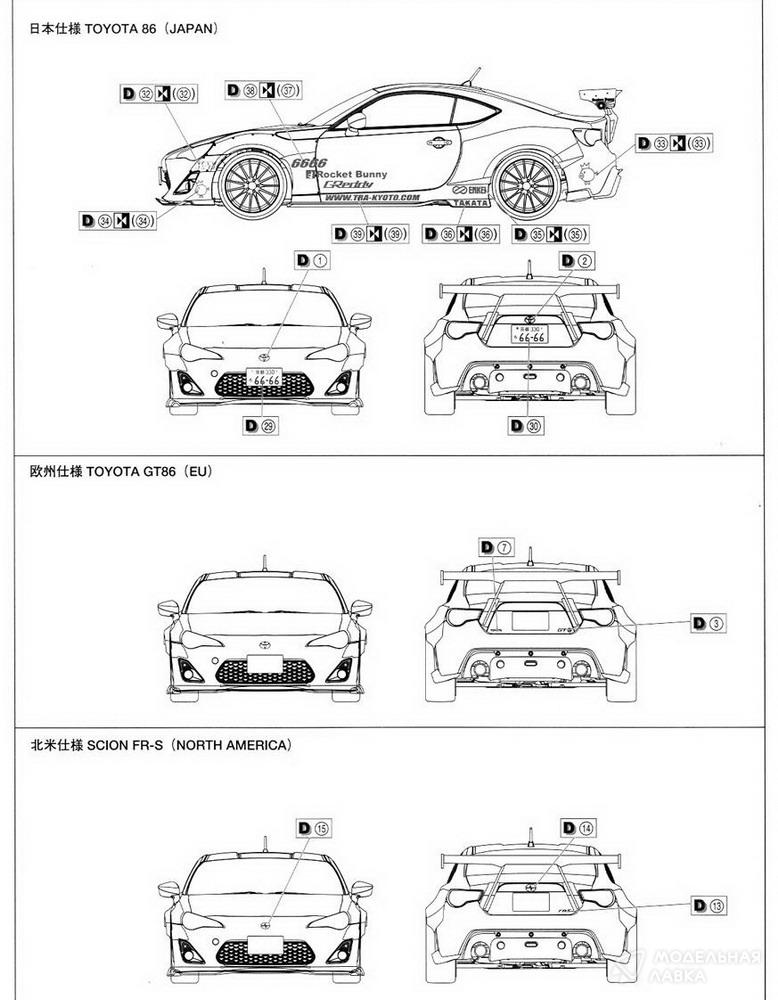 - Сборная модель Toyota 86 '12 Greddy&Rocket Bunny Enkei Ver