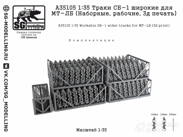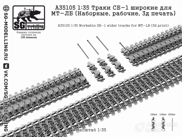 - Траки СБ-1 широкие для МТ-ЛБ (Наборные, рабочие, 3д печать)