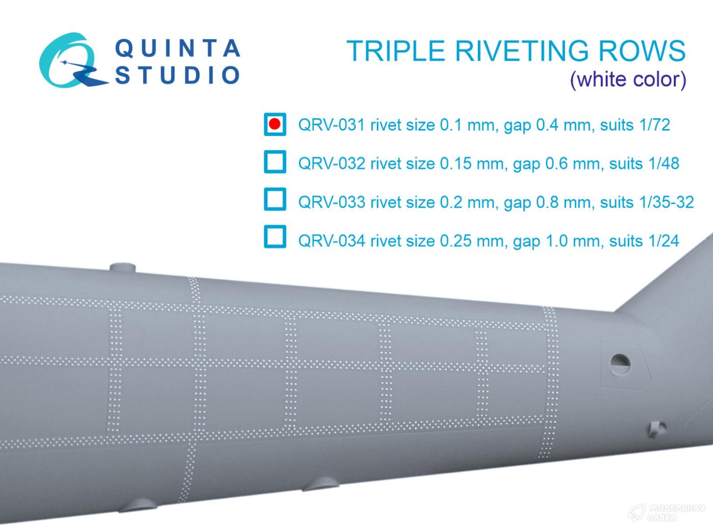 - Тройные клепочные ряды (размер клепки 0.10 mm, интервал 0.4 mm, масштаб 1/72), белые, общая длина 6.6 m