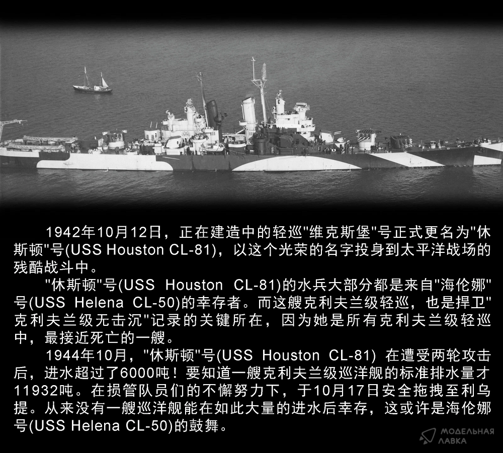 - Сборная модель USS Houston CL-81 1942 Cruiser