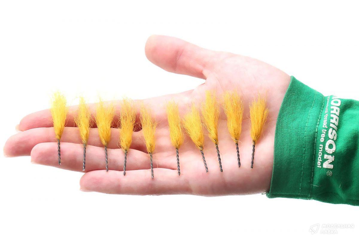 Высокие пучки травы для макетов и диорам дополнят любую диораму. Посадите несколько пучков вдоль дома, ограждения или водоёма на диораме. Высокие пучки травы золотисто-пшеничеого оттенка можно использовать в качестве имитации злаковых культур или сухой травы на макете или диораме. Для быстрой установки на ландшафтное основание предусмотрен установочный "хвостик". Просто сделайте отверстие в основании иглой или тонким шилом и вставьте пучок на необходимую глубину. Набор 10 шт. Высота пучков 2,5-3 см.