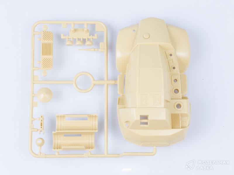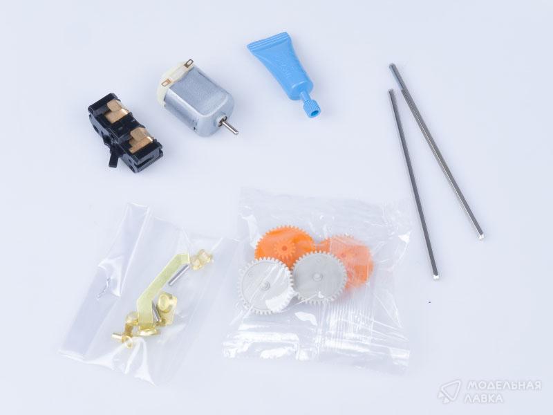 Модель автомобиля в масштабе 1/32 с электромоторчиком. Собирается без клея, на защелках. При сборке детям до 10 лет необходима помощь взрослых.