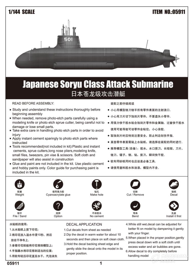 - Сборная модель японская подводная лодка класса Soryu