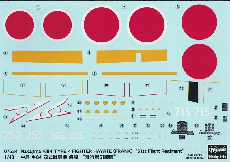 Сборная модель японский истребитель Nakajima Ki84 TYPE 4 FIGHTER HAYATE (FRANK) "51st Flight Regiment"