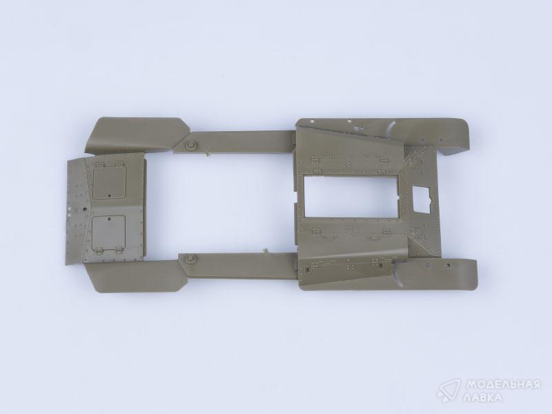 Установлены: поворотный мост, тросик для запасного колеса, задний держатель гос. номера.Кабина покрашена краской из "схемы", краск