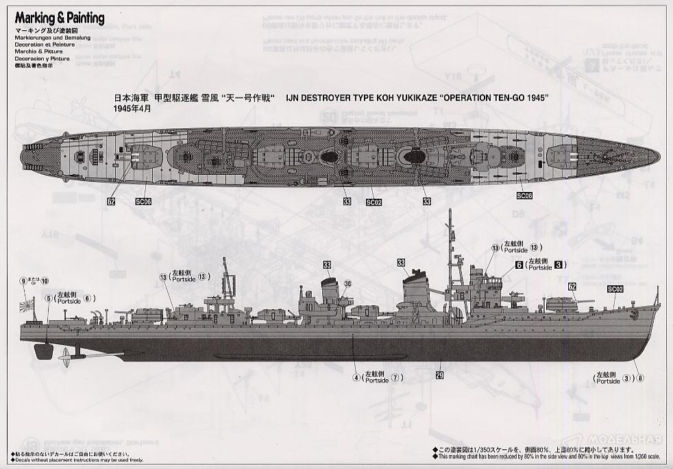 - Сборная модель Z22 Japanese Destroyer type KOH YUKIKAZE Operation TENGO 1945