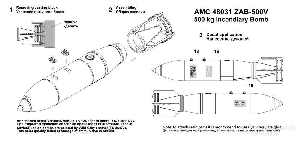 - ЗАБ-500В зажигательная авиабомба калибра 500 кг (в комплекте две бомбы).