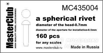 Заклепка сферическая. Диаметр шляпки 0,7 мм. Диаметр отверстия под установку 0,5 мм. Количество в комплекте не менее 160.