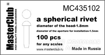 Заклепка сферическая. Диаметр шляпки 1,8 мм. Диаметр отверстия под установку 1,5 мм. Количество в комплекте не менее 100.